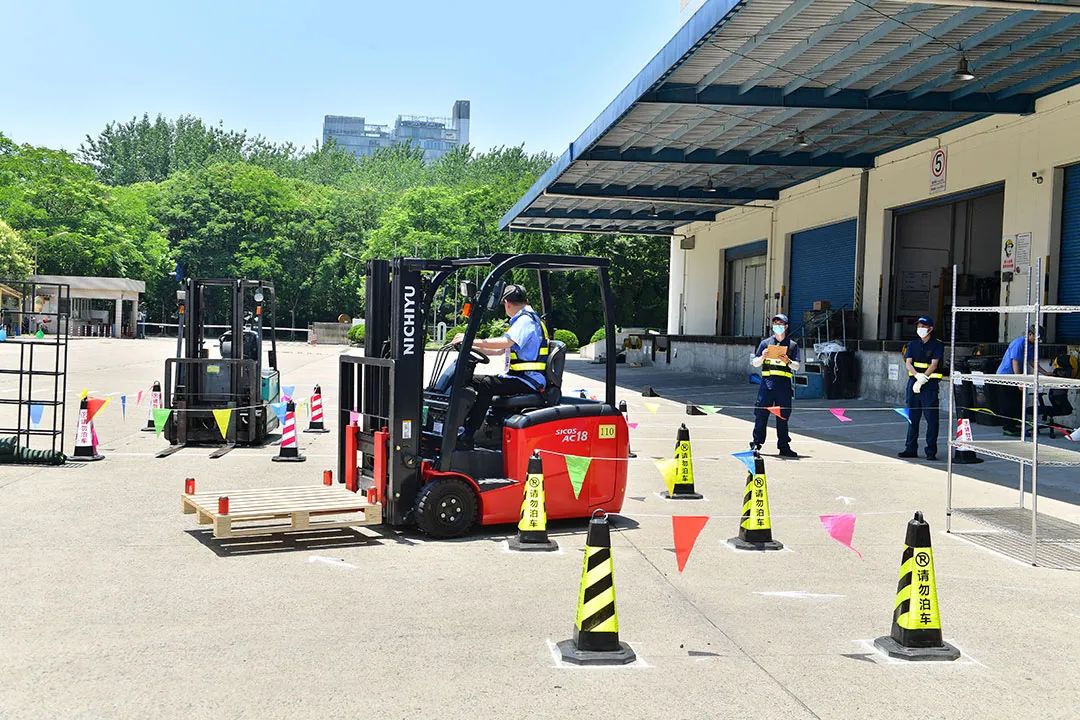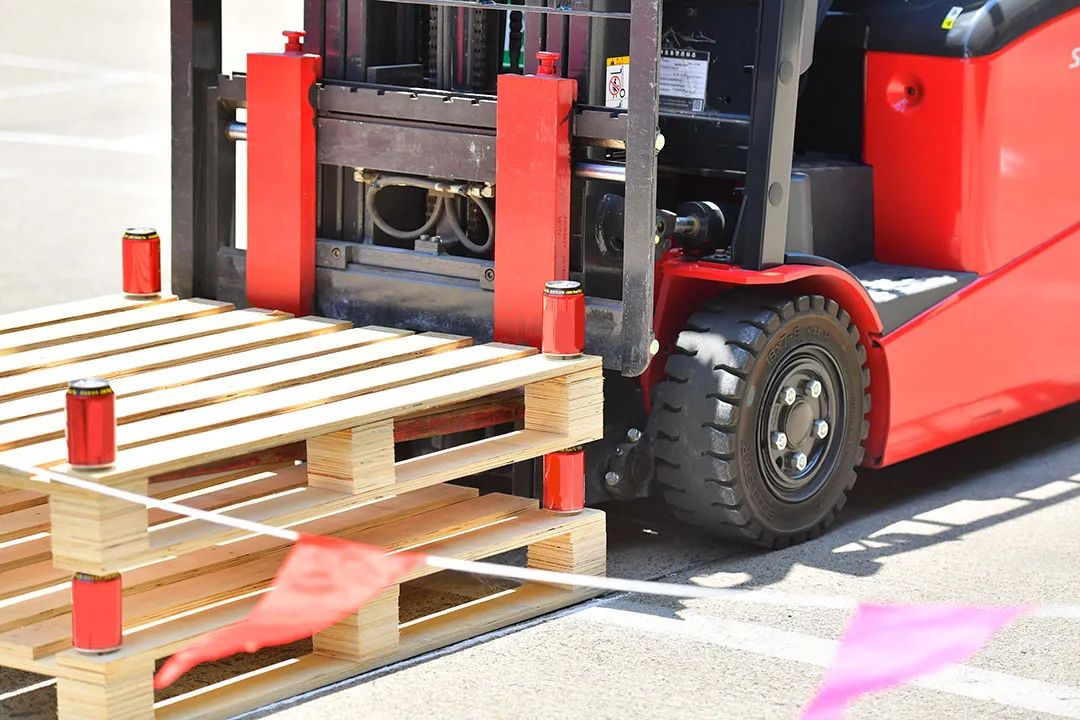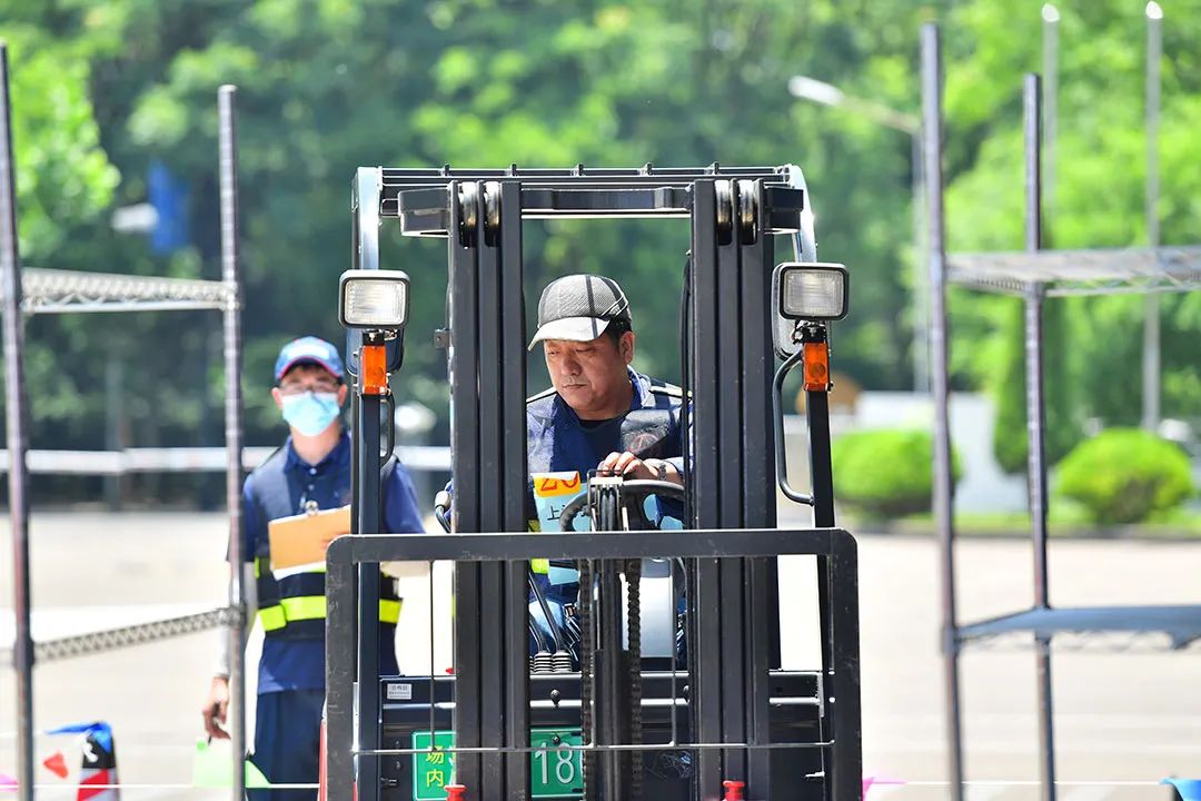 接下来进行的,是前移式叉车个人赛。这组比赛,模拟了中高位货架的工况,参赛选手驾驶三菱物捷仕旗下三菱品牌前移式叉车,先完成三层简易货架的堆叠作业,然后再完成货架上货物摆放作业。同样为了增加难度,货架上的托盘边缘,在三个方向粘上了气球,货物的摆放必须迅速且精准,若有气球破裂,则选手会被判扣分。