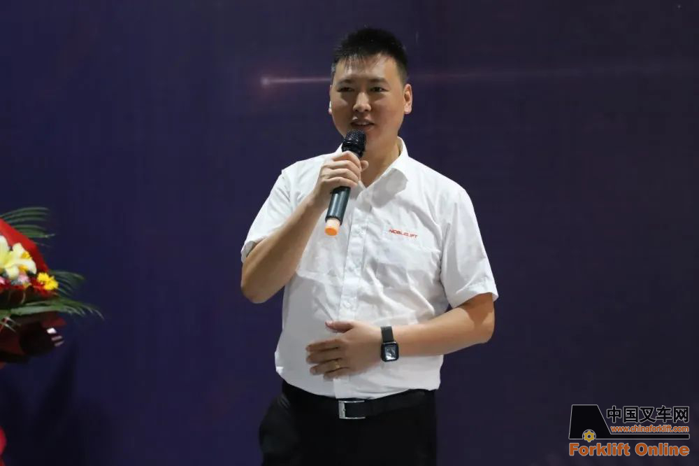 诺力总经理助理顾梓城先生开场辞,并对今年的工作提出了希望,并强调“诺锂”的使命是以高品质的锂电叉车让用户畅享绿色高效的工作新方式。并指出诺力商城(n-mall.com)是基于工业品特性,以代理商群体为核心,打造店中店模式,线下4S品牌店+线上4S品牌店+物流的销售云平台。商城的定位:以代理商为核心的工业品电商平台;商城的愿景:打造工业品行业线上线下一体式的销售云平台;商城使命:要实现工业品叉车的电商之梦。