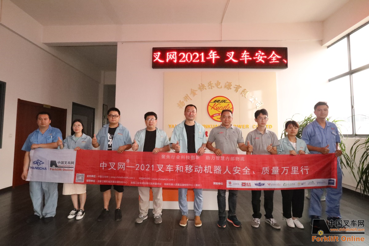 中国叉车网(www.chinaforklift.com)新闻中心2021年6月26日,由国家工程机械质量监督检验中心、全国工业车辆标准化技术委员会、国家机器人质量监督检验中心(重庆)指导的,中叉网主办,杭叉集团协办,淄博火炬、唐山盛航、卡斯卡特、金鹰科技、凡己科技、唯创安全、毅狮迈、宇帆锂电铅酸充电机、汉诺威米兰展览等公司联合赞助的“中叉网-2021叉车和移动机器人安全、质量万里行”一行,走进扬州金快乐电源有限公司(简称:金快乐电源),和董事长童军先生等公司高层就其公司境况、产品品质以及公司生产安全管理诸问题展开深入交流。