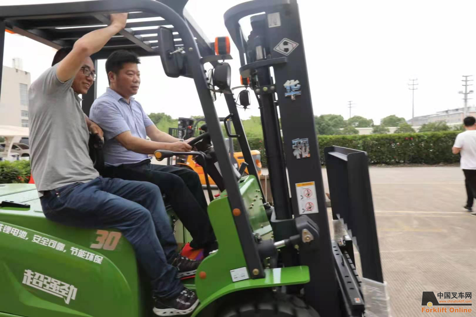 施总向中叉网详细介绍并亲自演示了华和新能源锂电池平衡重式叉车HEF系列3吨锂电叉车 华和锂电叉车具有内燃叉车的强劲性能,安全可靠,节能环保,而且性价比很高,让用户体验到绿色高效的搬运模式。
