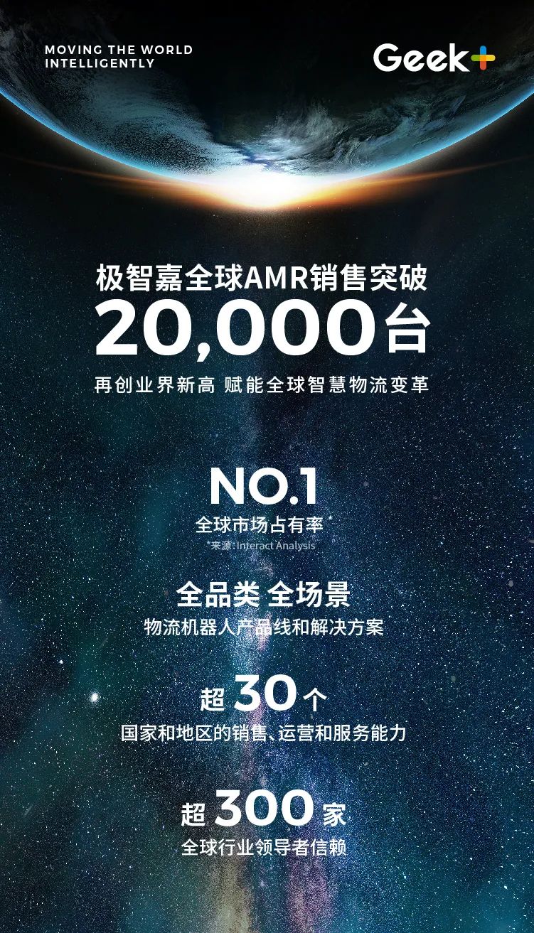 全球AMR引领者极智嘉 (Geek++) 今日宣布,极智嘉全球AMR机器人销售累计突破2万台,凭借强大增长势能和创新力量,带领全球AMR行业迈进“两万台时代”,开创行业发展的新篇章,进一步助推全球供应链智能升级!自公司成立以来,极智嘉凭借货架机器人和货箱机器人两大产品线,成为业内知名的“货到人”解决方案专家,通过结合两种方案的特点和优势,为不同行业客户量身打造最佳解决方案。