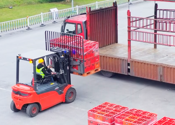 林德为重庆啤酒厂提供的新一代电动平衡重叉车E40-50,不仅大大提高了重庆啤酒厂的堆垛和输送效率、降低了人工操作及运营成本、还优化了仓库的工作环境,为重庆啤酒厂的进一步发展奠定了基础。