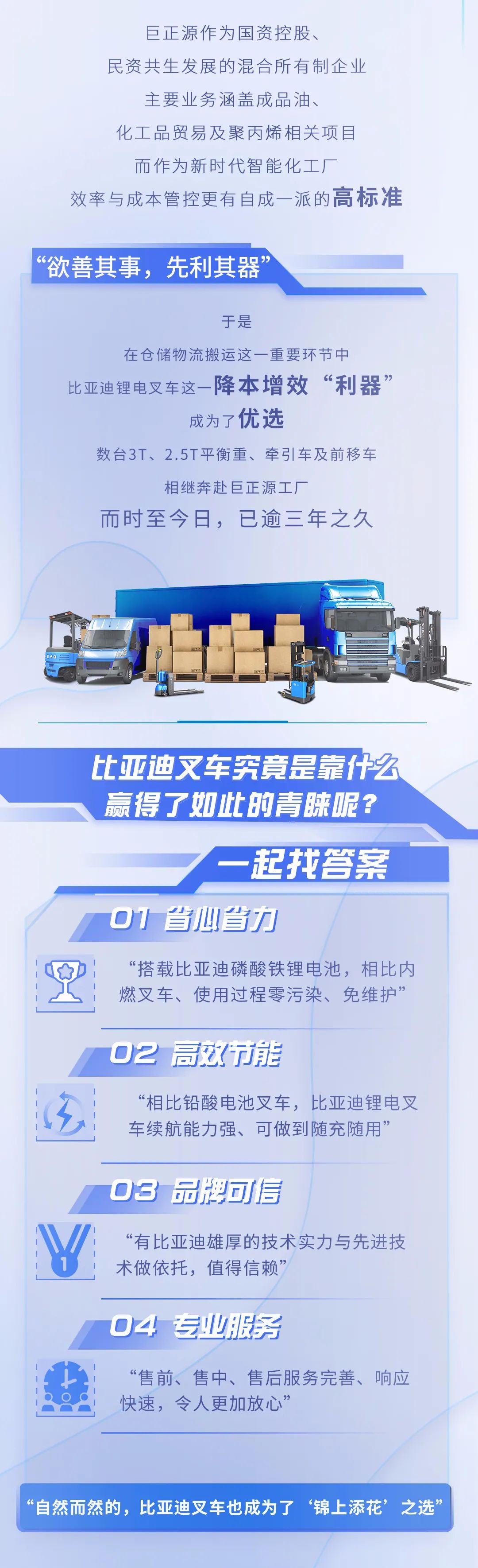 锦上添花!比亚迪叉车助力巨正源降本增效