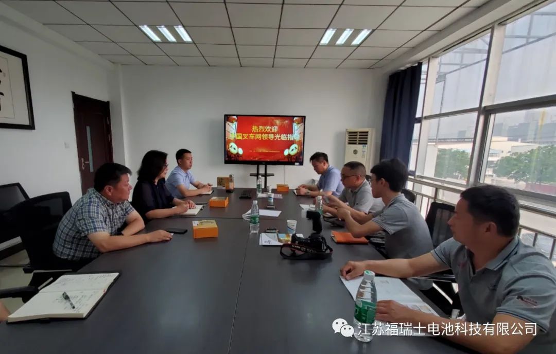 杭叉|中叉网-2021叉车和移动机器人安全、质量万里行第69站:中叉网胡总一行到访江苏福瑞士新能源有限公司,与福瑞士高层在友好气氛中针对锂电在工业车辆领域的应用、发展前景、发展机遇进行了深入的交流,并参观了展厅、电芯生产线和电源生产线,通过交流双方更加深此次了解,为今后建立更好的合作关系。
