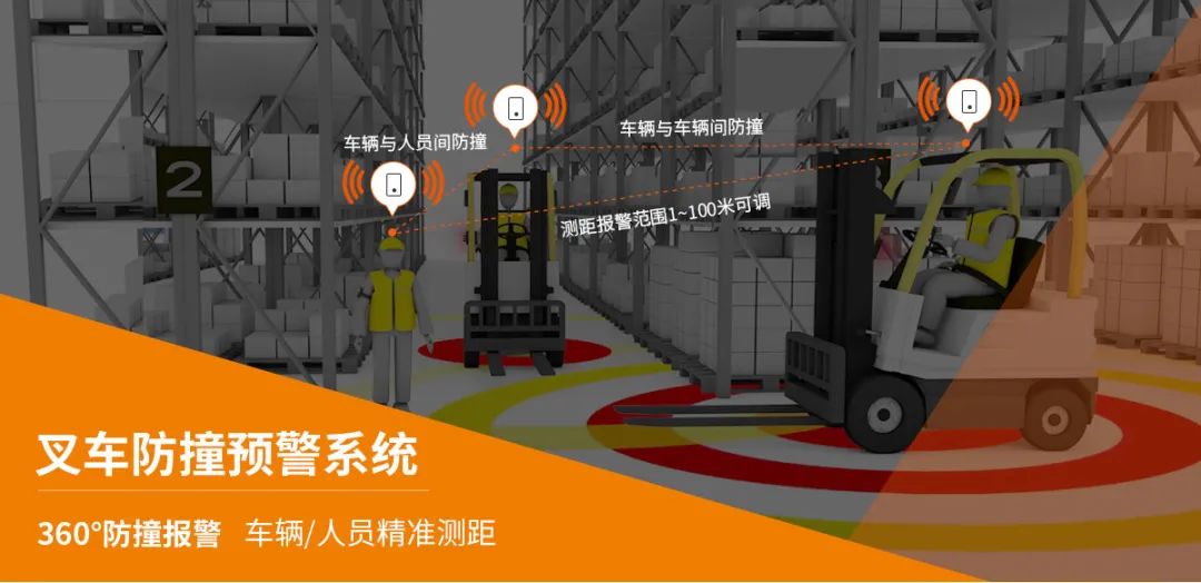 唯创安全的叉车防撞报警系统不仅具备测距精度高、反馈时间短、无误报、无盲区360°全方位探测、可穿透一般障碍物和建筑物拐角等优势,我们还可根据用户需求个性化定制。