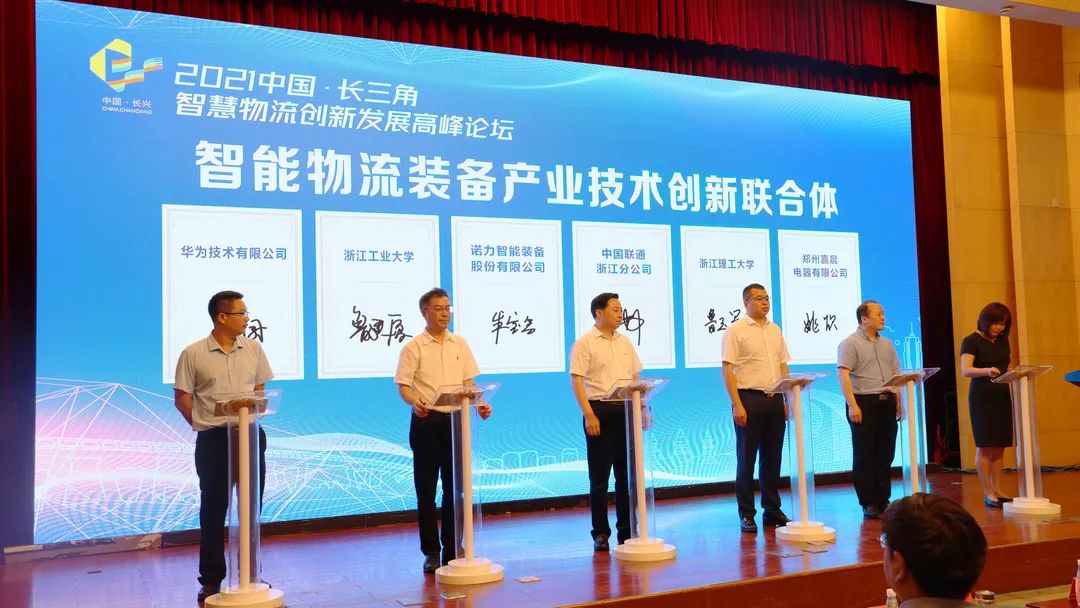 为整合多方智慧物流科技力量,深化合作,联合创新,寻求更大互利共赢,由诺力股份牵头与华为技术有限公司、浙江工业大学、浙江理工大学、中国联通浙江分公司、郑州嘉晨电器有限公司共同签订“智能物流装备产业技术创新联合体”合作协议。