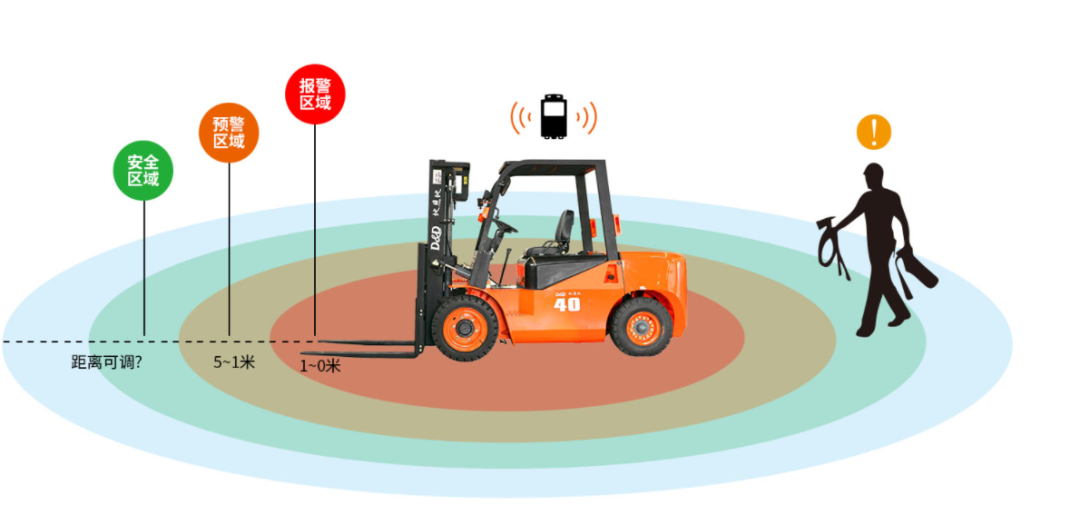 而且是360度感应,当有人进入报警区域时会马上报警,大大地降低了叉车事故的发生。