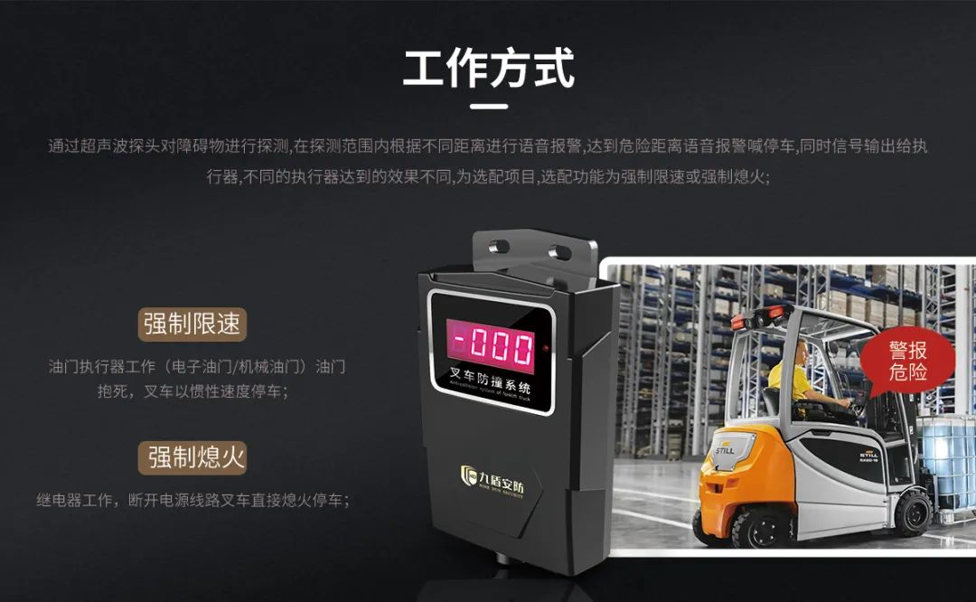 叉车可以强制限速,也可以强制熄火,这是选配功能,客户可以根基自己的厂区需求选择不同的选配功能。