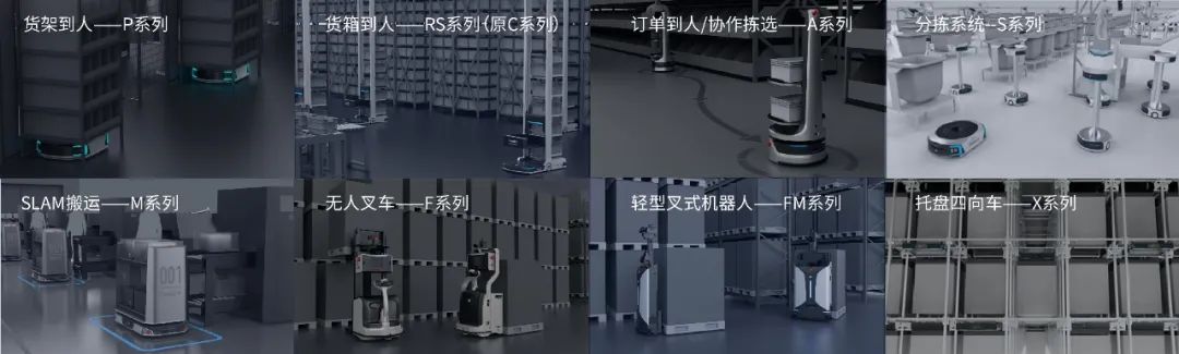 在产品力方面,极智嘉现有产品矩阵覆盖: 机器人拣选系统、搬运机器人、分拣机器人和智能叉车、托盘四向车系统。