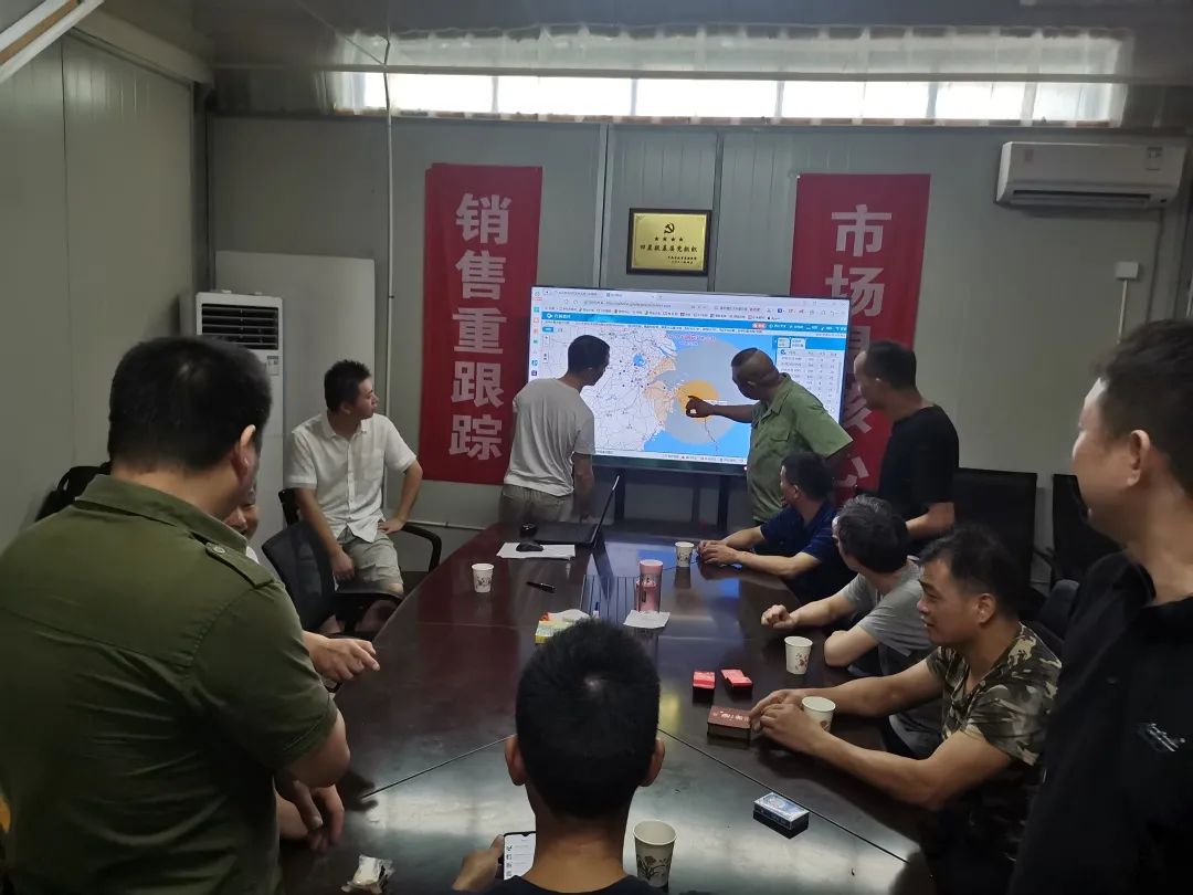 7月24日,生产例会中,纪委书记严溢庆,布置第一项任务就是防台抗台,做好各项准备,启动应急预案,对公司各个区域进行巡查,对本次防汛抗台工作进行部署商议。生产副总成立叉车、钣金、电焊、总装、千斤顶等9个应急小分队,各车间接到任务,第一时间紧急调配器材,各种通讯设备24小时待机,指挥若定,抢险减灾。总值班室灯火通明,时刻注视着风情、雨情、灾情、险情。