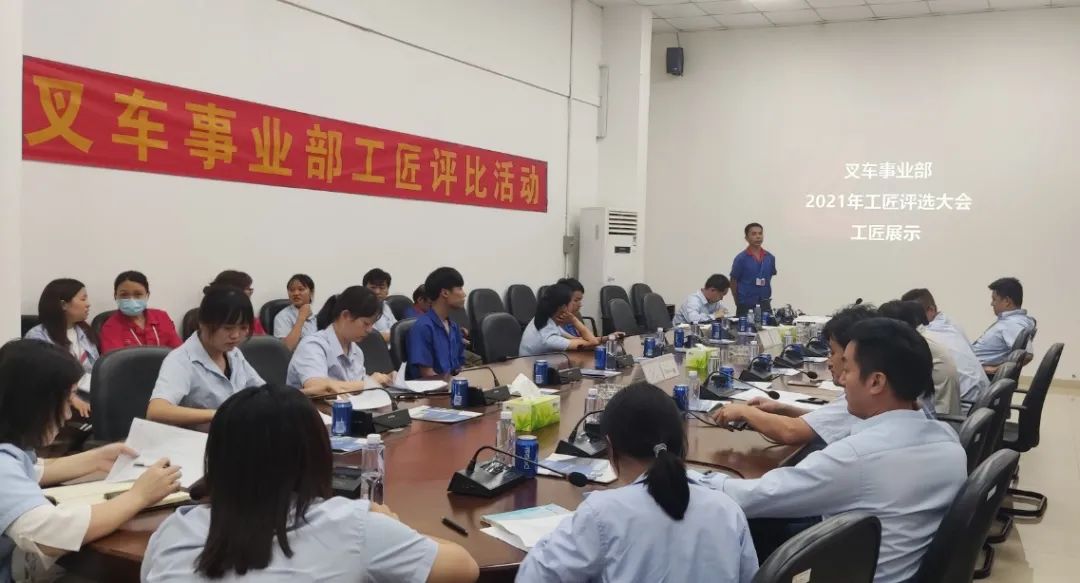 为弘扬工匠精神,厚植工匠文化,营造尊重人才、崇尚工匠的工作氛围,树立岗位技能标杆,2021年7月8日,叉车事业部2021年度工匠评选阶段在韶关展厅会议举行。韶关工厂厂长王先松、品质部经理杨彬及韶关各车间主管及品质文化负责人参加。