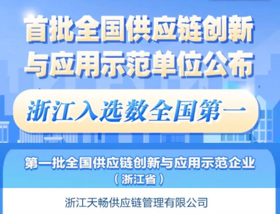 近日,商务部、工业和信息化部等8单位联合公布首批全国供应链创新与应用示范企业名单,浙江天畅供应链管理有限公司榜上有名。