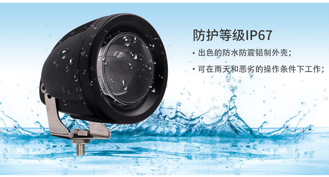 采用全铝外壳防震、散热结构特别设计,保证灯具工作时热量快速扩散,搭配高强度钢化PC镜面,提高灯具寿命、可靠性。IP67全防护等级设计,灯具能可靠工作于雨中及恶劣环境。