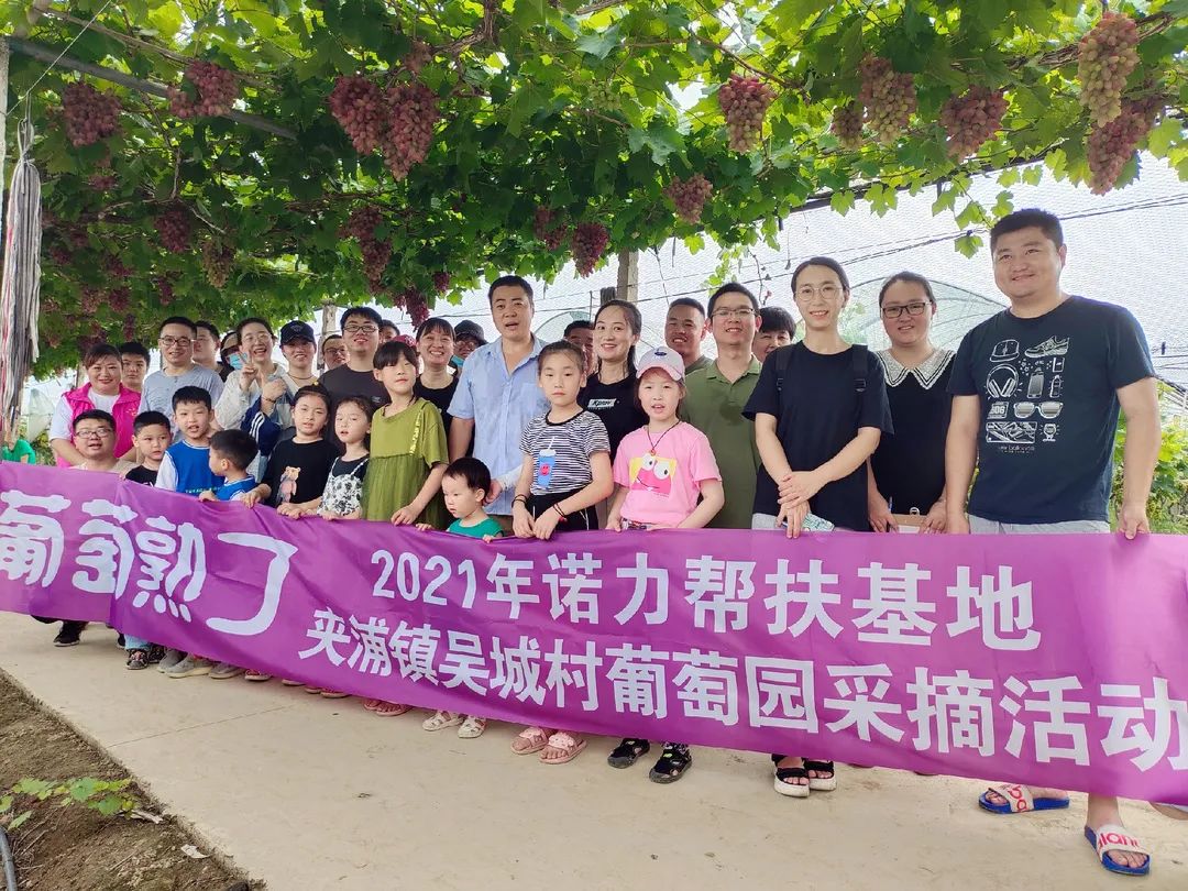 眼下正是葡萄陆续成熟的季节,诺力股份的助农帮扶基地夹浦镇吴城村葡萄园葡萄飘香,绿油油的叶子下挂满了成熟饱满的葡萄,吸引了不少顾客。