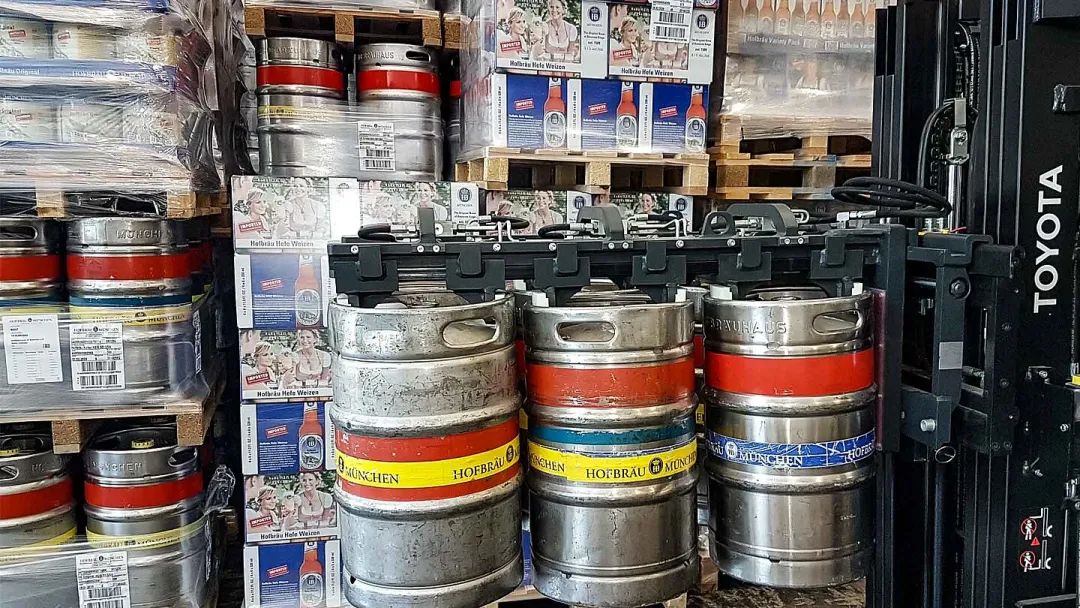 啤酒桶搬运中心集中在新的物流园区,建于2013年。之前一直是手动搬运。