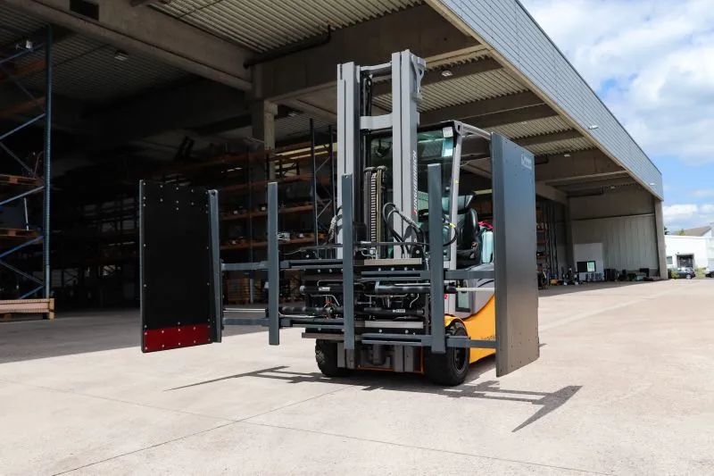 KAUP可提供载荷量1000-40000kg液压控制的叉车属具,所有产品均经过DIN EN ISO 3834-2:2006-03和ISO 9001:2015认证。
