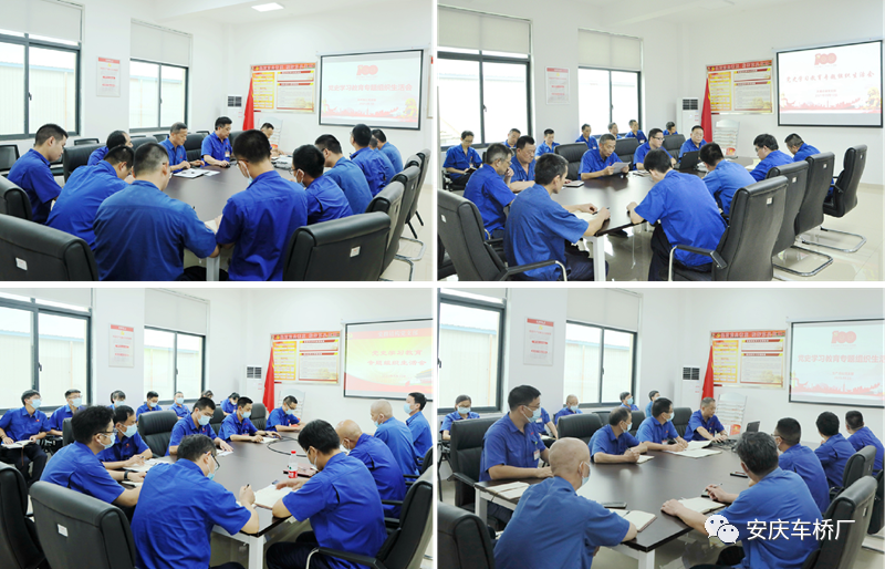 为深入贯彻落实习近平总书记关于加强党史学习教育的重要指示精神,按照集团公司党委的统一部署和要求,8月10日—12日,安庆车桥党委所属4个党支部组织召开党史学习教育专题组织生活会。公司党委书记、总经理胡全柱与技术加工党支部党员一起深入学习贯彻习近平总书记“七一”重要讲话精神,交流学习体会,查找差距不足,明确整改措施,推动党史学习教育走深走实。公司党委委员王疆、谷金银、叶佳峰也分别以普通党员身份参加所在支部组织生活会。
