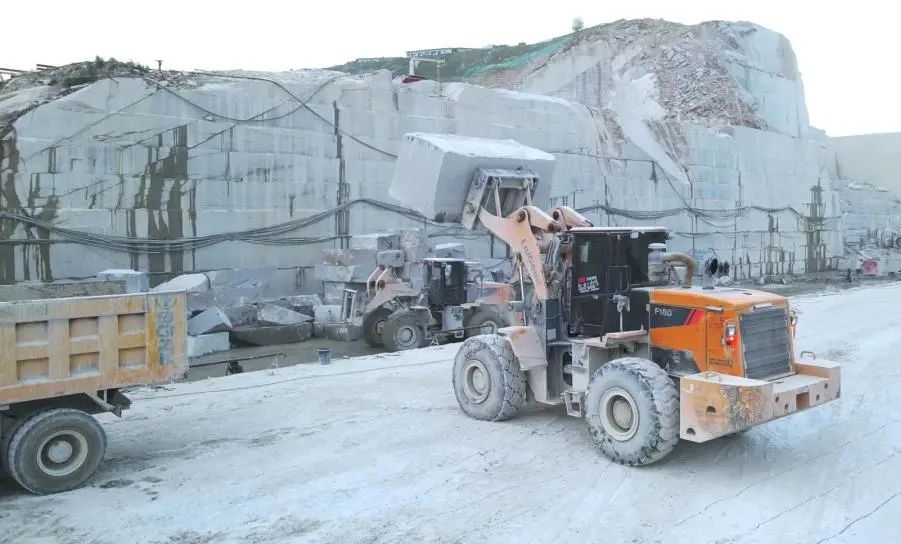 锯盘飞转,大锤挥舞,机器轰鸣……一块块巨大的石材被我轻松叉起装到运输车上,穿过路况复杂的道路,远销国内外各大石材市场。