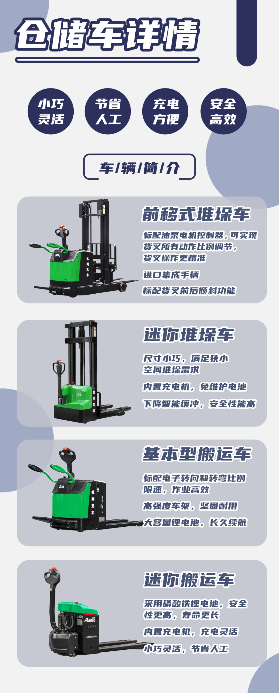 公司已形成1-48吨内燃叉车、0.75-18吨蓄电池叉车、集装箱专用叉车、45吨集装箱正面吊、牵引车、搬运车、堆高车、越野叉车、伸缩臂叉车、登高车等全系列、多品种的产品结构以及多款AGV智能工业车辆,达上万种品种规格。自主开发的新产品多次荣获全国机械工业大奖,省、市科技进步奖,并获全国用户满意产品称号,主导产品获国家出口免验资格。