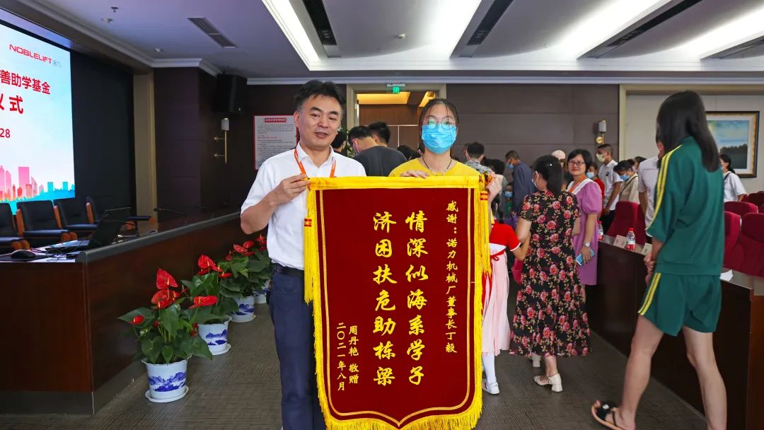 最后,强毅秘书长充分肯定了诺力在慈善公益事业上付出的努力和卓越的贡献,对诺力董事长丁毅带领下全体员工们积极履行社会责任、带头践行慈善帮困的义举表示称赞,同时,他也号召莘莘学子好好学习,日后回报爱心企业和社会各界的帮助。