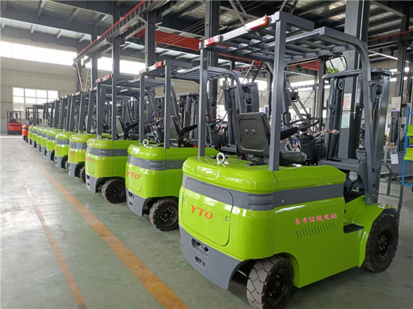 图为新一代“东方红” 锂电叉车组装完毕,以满足不断增加的订单。