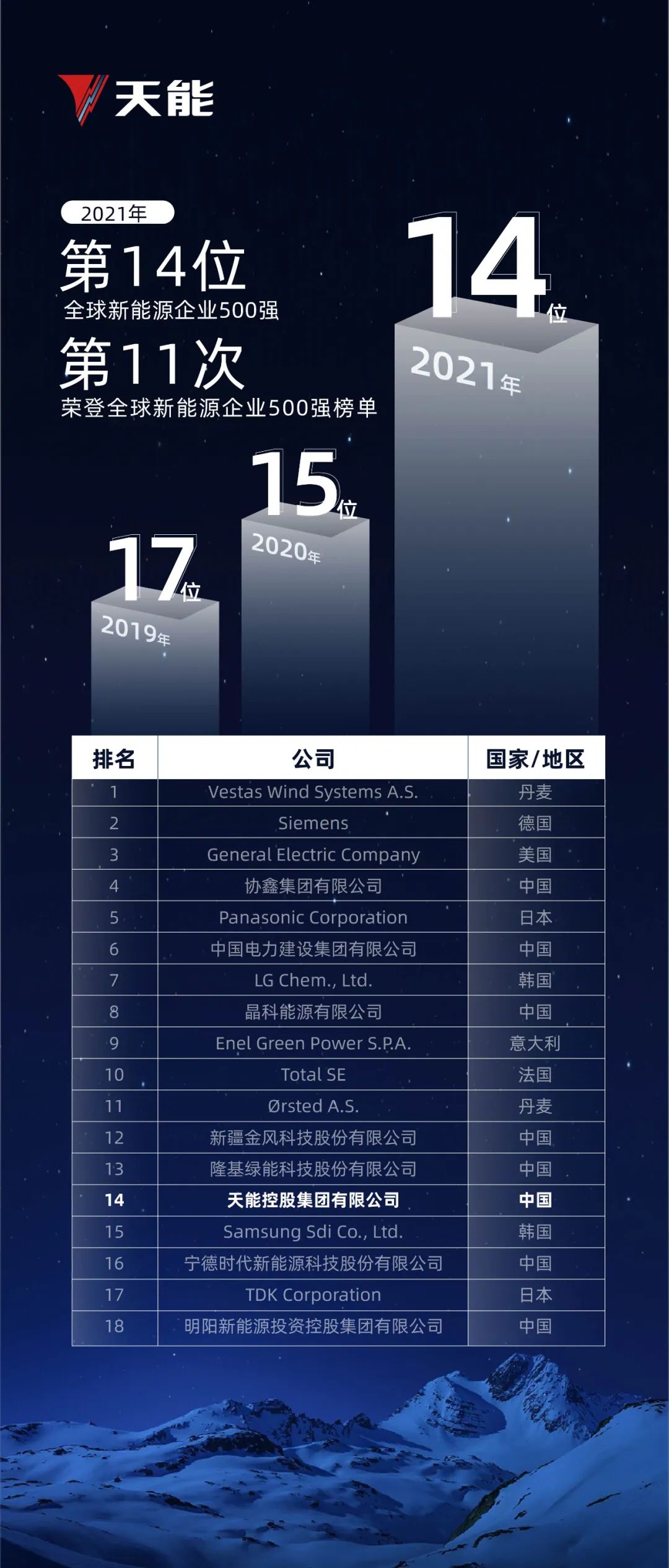 9、天能位列2021全球新能源企业500强第14位