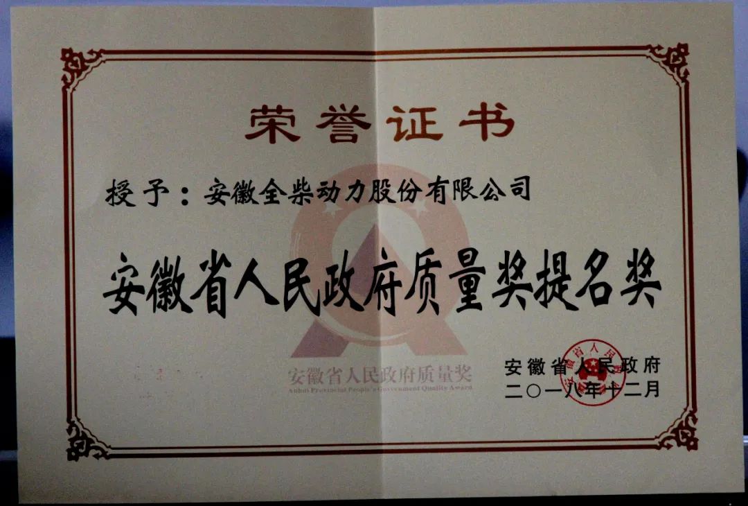 早在2018年,全柴动力即获得过安徽省人民政府质量奖提名奖,此番荣获质量奖,正是全柴动力秉持“质量第一、效益优先”理念的真实写照,也说明近两年全柴动力的行业地位和品牌效应得到了进一步提升。