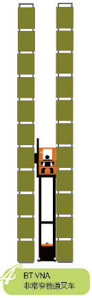 VNA较其他密集存储方式实现了对所有托盘位的直接和高效存取,同时更窄的通道宽度较前移式叉车实现了更高的空间利用率。