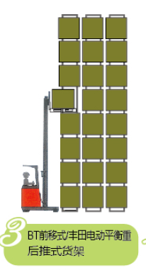 后推式货架是一种兼顾空间利用率和出入库作业效率的存储方式。