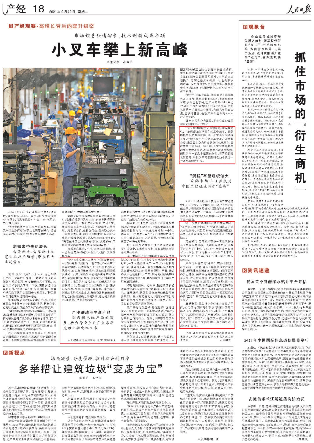 近日,《人民日报》刊发产经观察专栏文章《小叉车攀上新高峰》,报道以徐工叉车为典型例证,探问中国工程机械企业如何把握数字化、智能化、国际化发展机遇推动叉车行业“高原之上再攀高峰”。