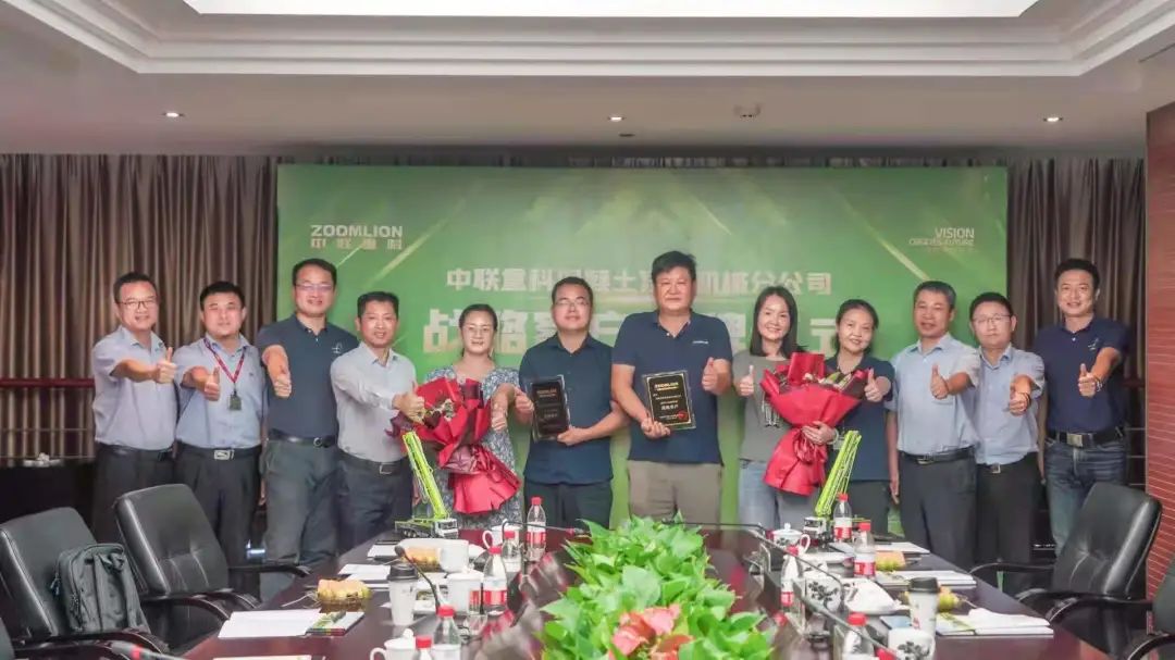 9月24日上午,中联重科混凝土泵送机械分公司向两家湖南战略客户授牌的仪式在长沙麓谷工业园隆重举行。中联重科助理总裁兼混凝土泵送机械分公司总经理黄建兵、混凝土机械营销公司副总经理张良,长沙三竟中邦机械设备有限公司总经理李中明、湖南伦帆机械设备有限公司总经理董华军及两家企业相关负责人参加授牌仪式。中建西部建设梅溪湖分公司站长陈凯、湖南省工程机械租赁服务行业协会副会长兼泵车分会秘书长张甜一行与中联重科研发、营销、服务及市场全体代表共同见证了这一时刻。