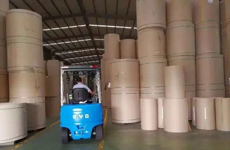 另一方面,则是在这里,比亚迪叉车正助力着当地纸业行业的蓬勃发展,在青岛某纸卷物流仓库内,比亚迪3.5T、4.5T锂电叉车安静的穿梭于相对狭窄的通道,搬运着单卷重达1吨的货物。或许你买到的一本书籍、一套试卷、一份历年真题中的纸张,正是来自这里。
