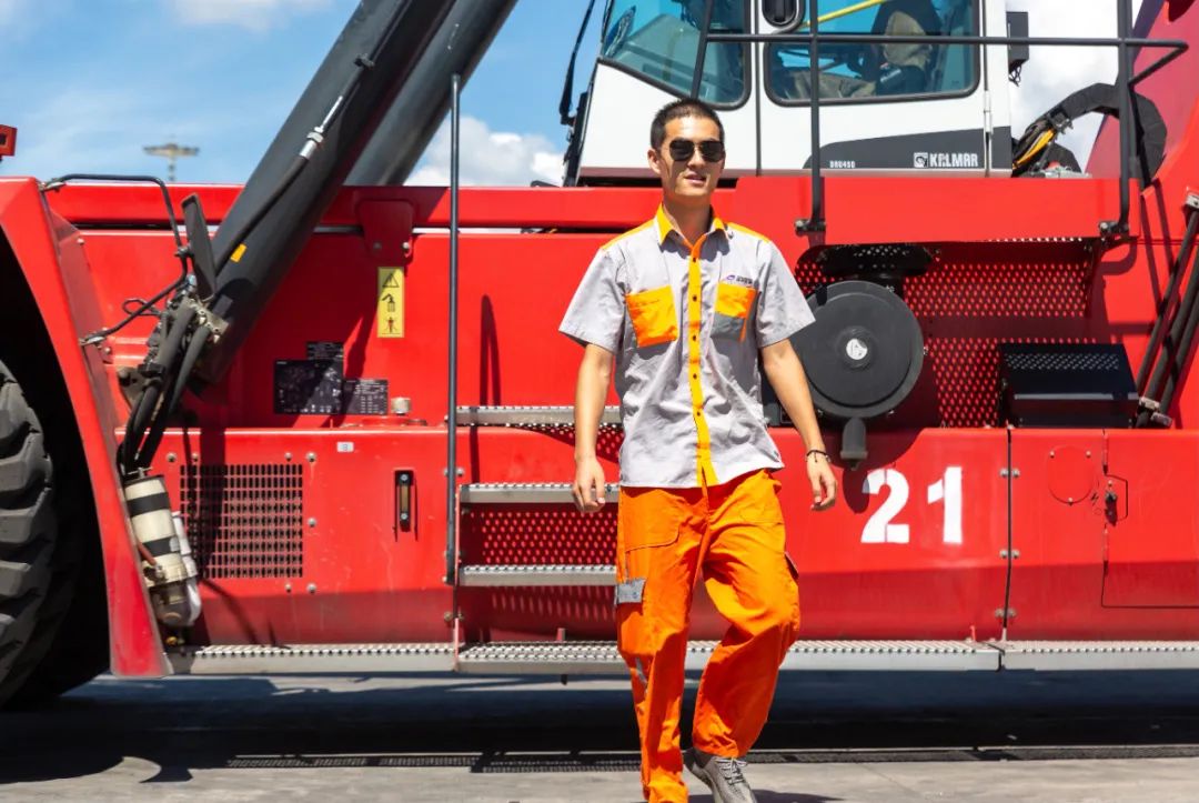 侍艾佳表示:“卡尔玛正面吊灵敏度非常高,操作性能好,无论我做吊具的平移和旋转动作,反应都非常的迅速,特别是这个新款操作手柄,所有的设备功能都能在手柄上操作完成,非常方便,这大大提高了我每天的工作效率。”