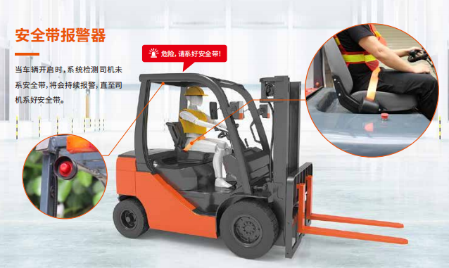 (3)叉车安全警示:车载声光警示灯、叉车安全灯、叉车安全带报警器
