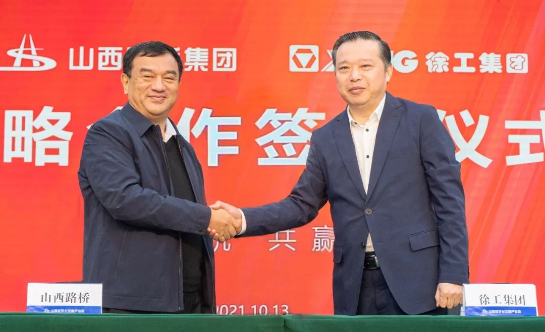 山西交控集团副总经理、山西路桥集团党委书记、董事长杨志贵与徐工集团党委书记、董事长邱成签署战略合作协议。晋中市市委书记吴俊清,山西交控集团党委书记、董事长袁清茂,徐工集团副总经理韩冰、罗东海,徐工技师学院院长冯跃虹等领导出席签约仪式。