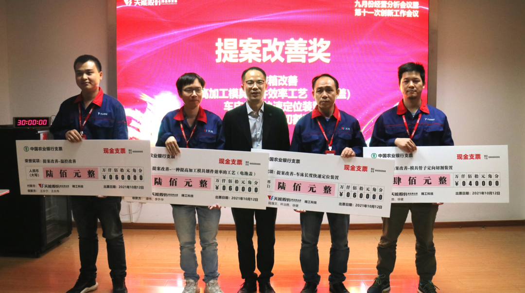 10月11日-10月12日,部品事业部召开经营分析会议暨第十一次创新工作会议,各单位自查自纠补短板,提整改措施、抓创新工作和下一步行动计划。活动中,重点对优创平台中四项具备代表性的提案改善优秀项目进行表彰奖励,以此鼓励有技能有想法有干劲的技术人才继续创新,为天能可持续发展作出贡献。