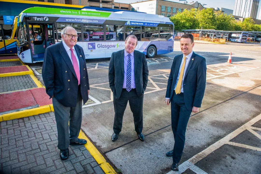 从左往右:David Wilson,苏格兰斯特拉斯克莱德交通伙伴(SPT)运营委员会主席;Graeme Dey,苏格兰交通部长;Duncan Cameron,第一巴士公司(First Bus)代理总经理