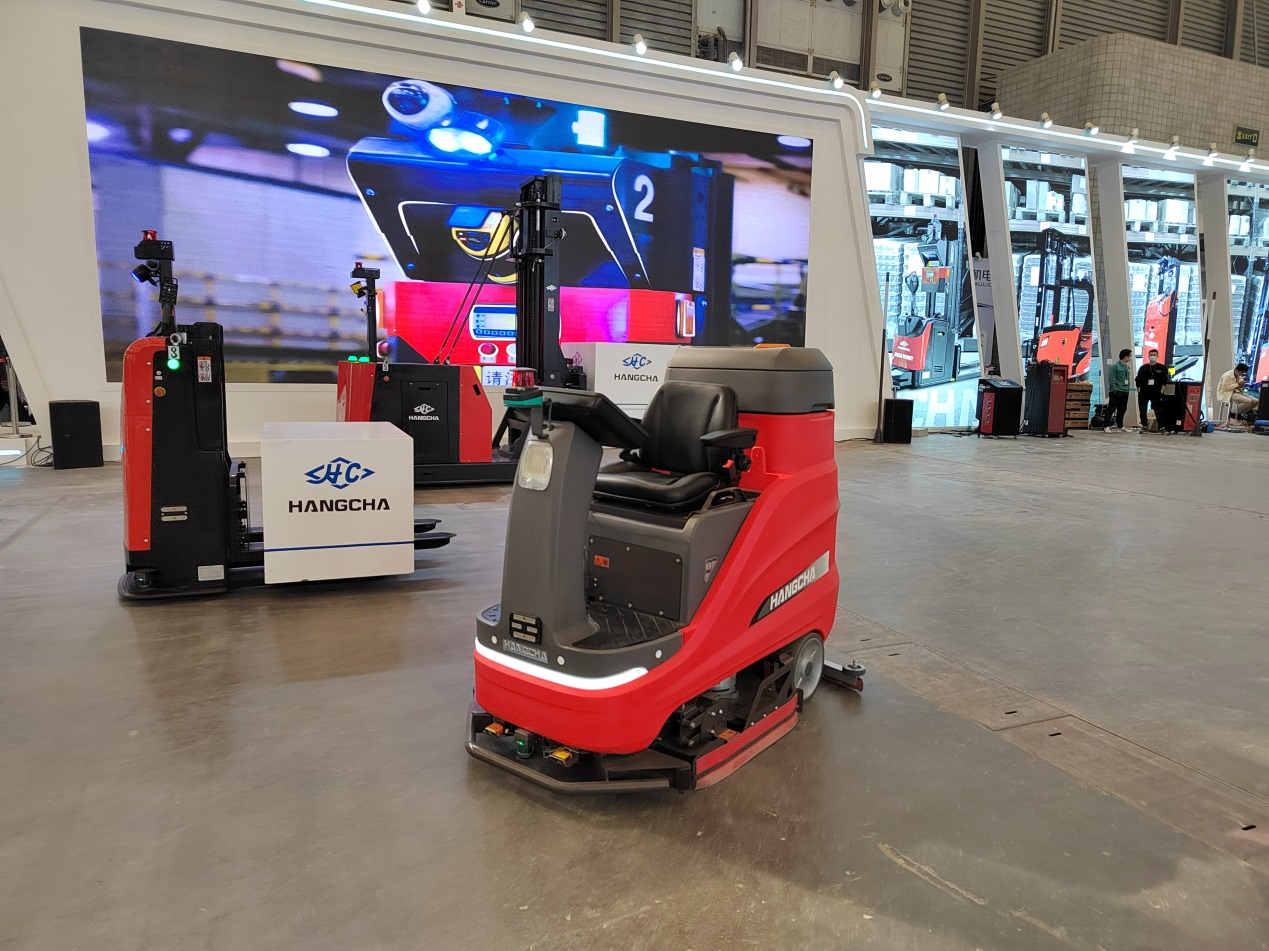 在AGV展区,展出的X系列无人洗地机是杭叉经过市场调研开发的一款新的产品。目前国家对环保要求比较严格,使用杭叉叉车的终端工厂客户,他们在环保、企业管理的人性化、办公室的舒适环境、厂区环境的要求方面更高,如果使用人力来进行清洁,成本更高不说,还达不到客户对环境的要求,X系列无人洗地机应运而生,可大大提高效率的同时也降低了成本。