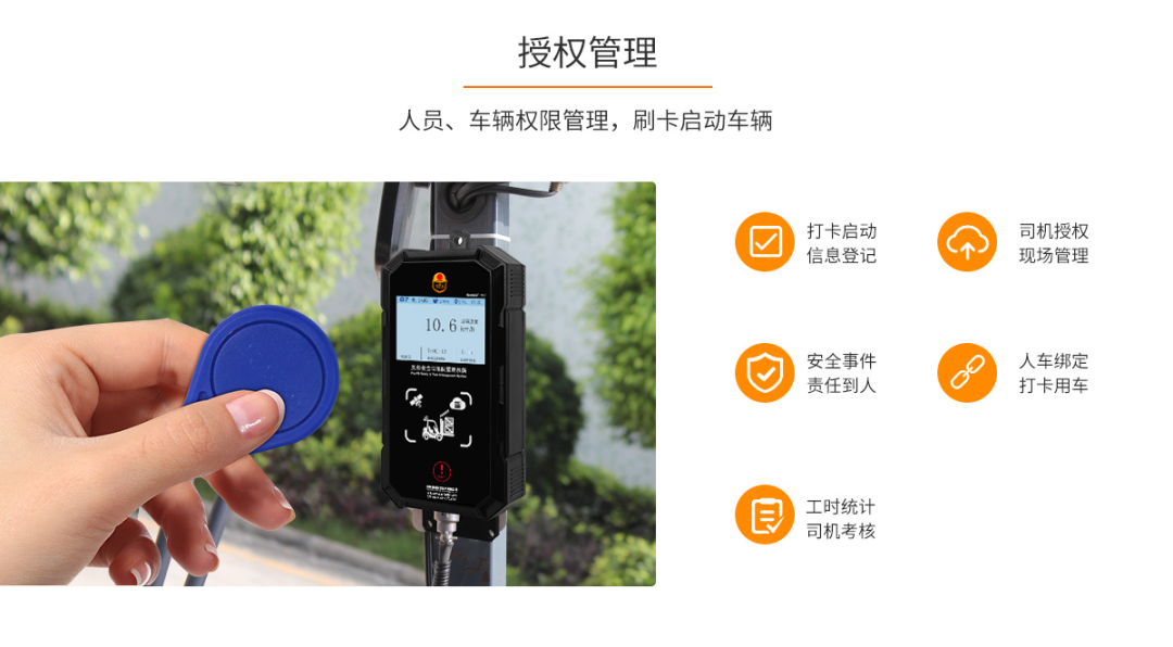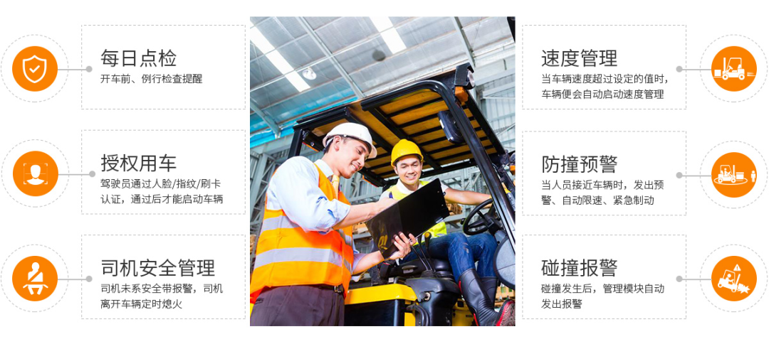1、人员、车辆权限管理:需通过刷卡、指纹或人脸识别启动车辆,杜绝无证人员启动叉车,若发生安全事件或司机违章操作,都能明确锁定责任人,实现对叉车驾驶员的行为监督;且提升司机考核与管理的效率。
