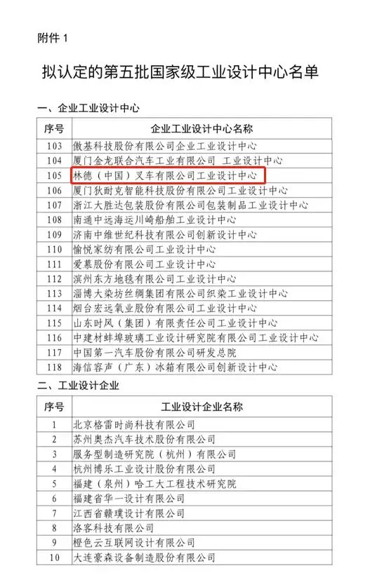 最近,国家工业和信息化部公布第五批国家级工业设计中心名单,林德(中国)叉车有限公司工业设计中心等118家机构中心被评定为国家级工业设计中心。此次,厦门市仅三家企业获此殊荣,这也是林德(中国)继获得国家级企业技术中心后,再次获得一项重要的国家级奖项。