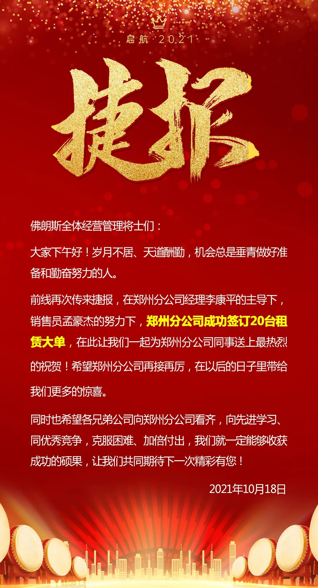岁末将至,佛朗斯人将继续高扬奋进风帆,凝聚干事创业的正能量,以百折不挠的韧劲,真抓实干的作风,坚定必胜信念,奋力为2021年交上完美答卷,为谱写佛朗斯发展新篇章而努力拼搏。