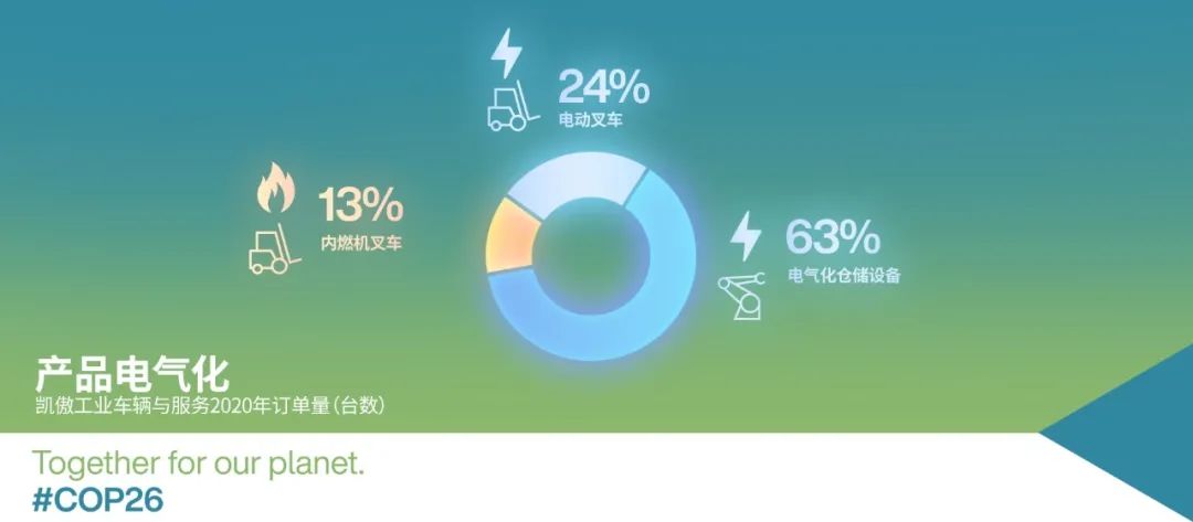本届气候大会上发布的2021年全球气候状况报告显示,2021年全球平均气温继续升高,海洋不断升温,已达新纪录,海冰范围达历史低点,融化速度翻番。而气候形势恶化导致全球极端天气频发。全球气候变化关乎我们每一个人、每一个企业。作为全球内部物流解决方案供应商,凯傲集团一直把可持续发展作为一种基本态度和行动指南纳入企业发展战略。