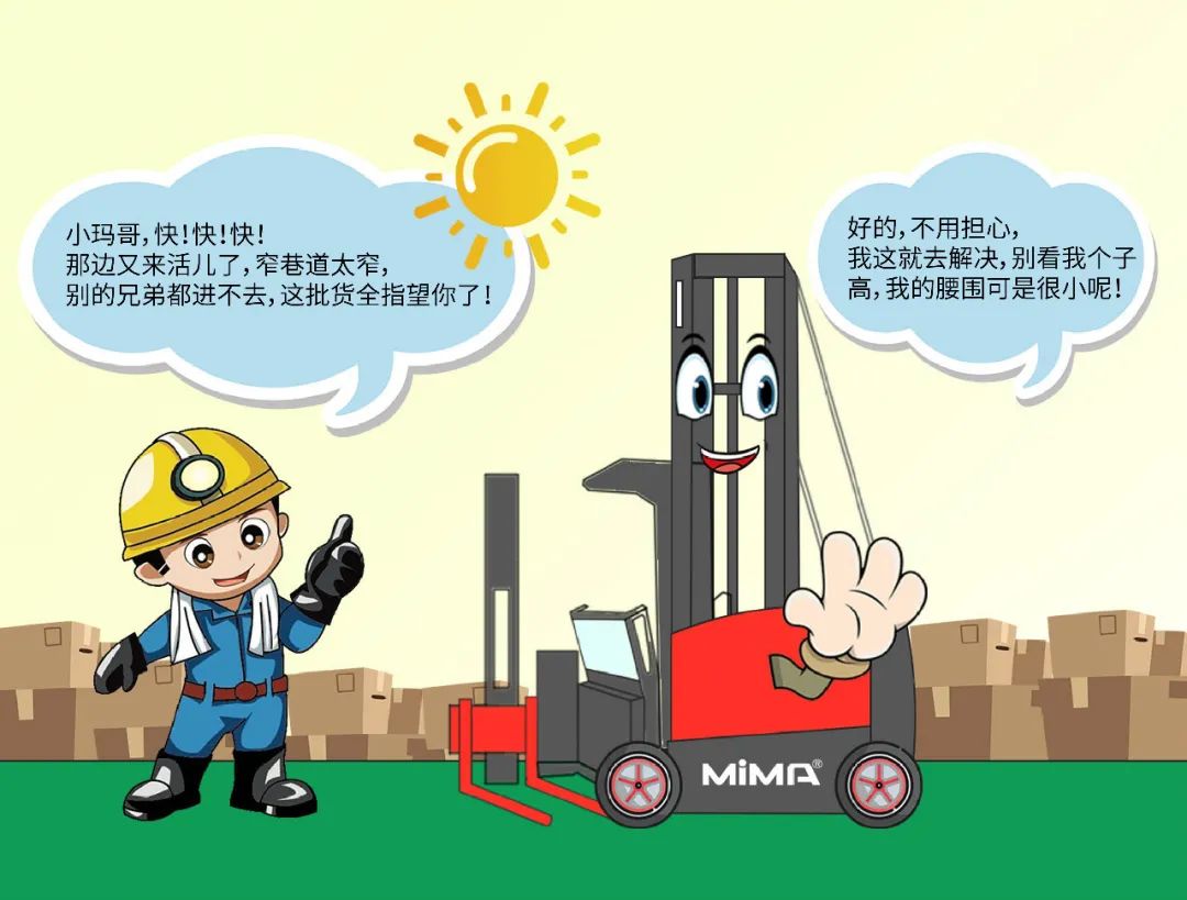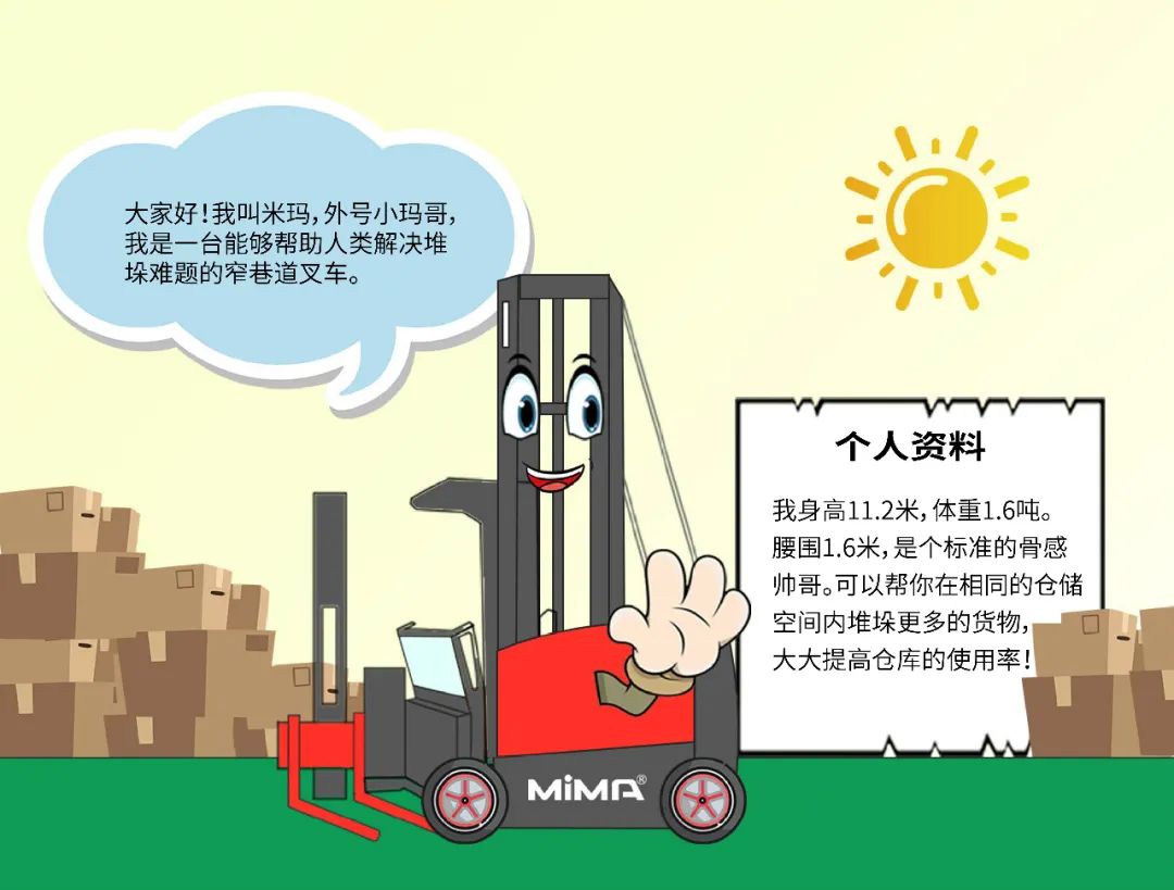 二十多年不断进取, MIMA 品牌以公司强大的科研创新团队为依托,以“安全、耐用、舒适、低碳(环保)”为设计理念,为客户提供500KG —100000KG应用解决方案、仓储设备及 相关服务。 通过不断的技术创新和专利积累,现在我们的产品已涉及12大类50多个品种,如电动托盘车搬运车、托盘堆垛车、前移式叉车、平衡重式叉车、牵引拖车、拣选车、窄巷道叉车、四向叉车、侧面叉车和非常物流设备、AGV、无人巷道堆垛机等等。产品广泛 应用于医药、食品、化工、电子、机械、家具、物流等各个行业。