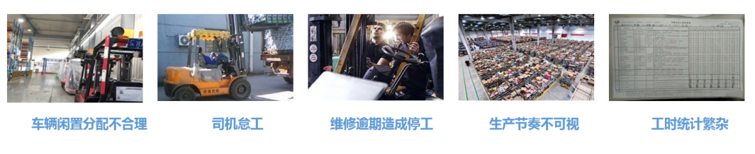 又如:司机怠工、工时统计繁杂、车辆闲置分配不合理、维修逾期造成停工,生产节奏不可视,无法追踪每辆叉车的使用效率,无法监测车队的整体利用率。