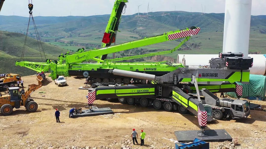 ▲中联重科QAY2000全地面起重机在山西某风电场吊装作业