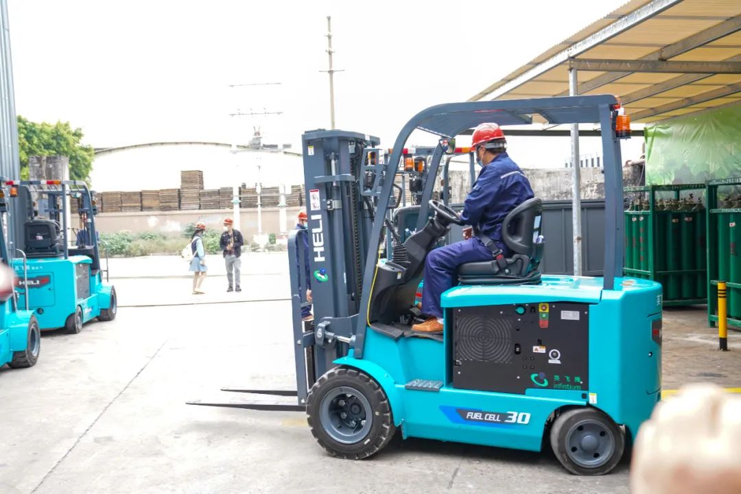本次交付的3吨燃料电池叉车是安徽合力研发的系列化氢燃料电池叉车中的重要一员,车辆机动灵活、性能强劲、驾乘舒适、视野开阔、高位承载优异,有着丰富的安全、智能化配置,能够满足各类物料搬运场景的需求;搭载英飞腾(上海)氢能源发展有限公司成熟可靠的35kW燃料电池系统,仅需3分钟即可完成加氢,并可连续工作5小时。