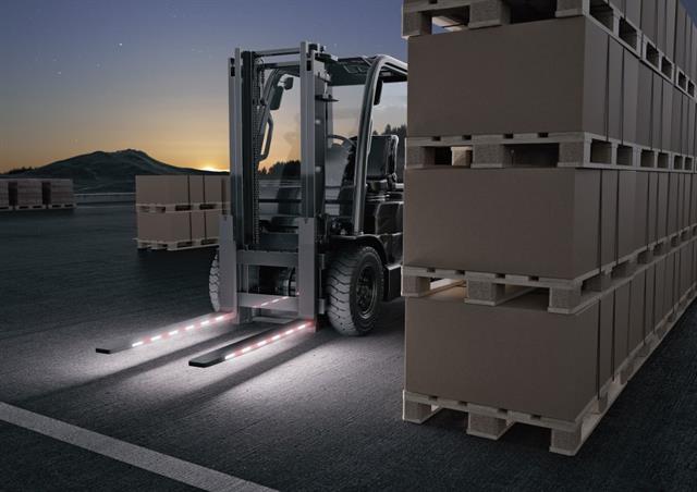 SmartFork Flash是一种简单但有效的安全功能,由一组连接到前叉内侧和外侧的LED灯条组成。货叉内侧的条带显示进入托盘的深度,以便高效安全地拾取货物。外部条带具有可编程灯,可在黑暗或不清晰的环境中进行可视化,从远处便可以看见。