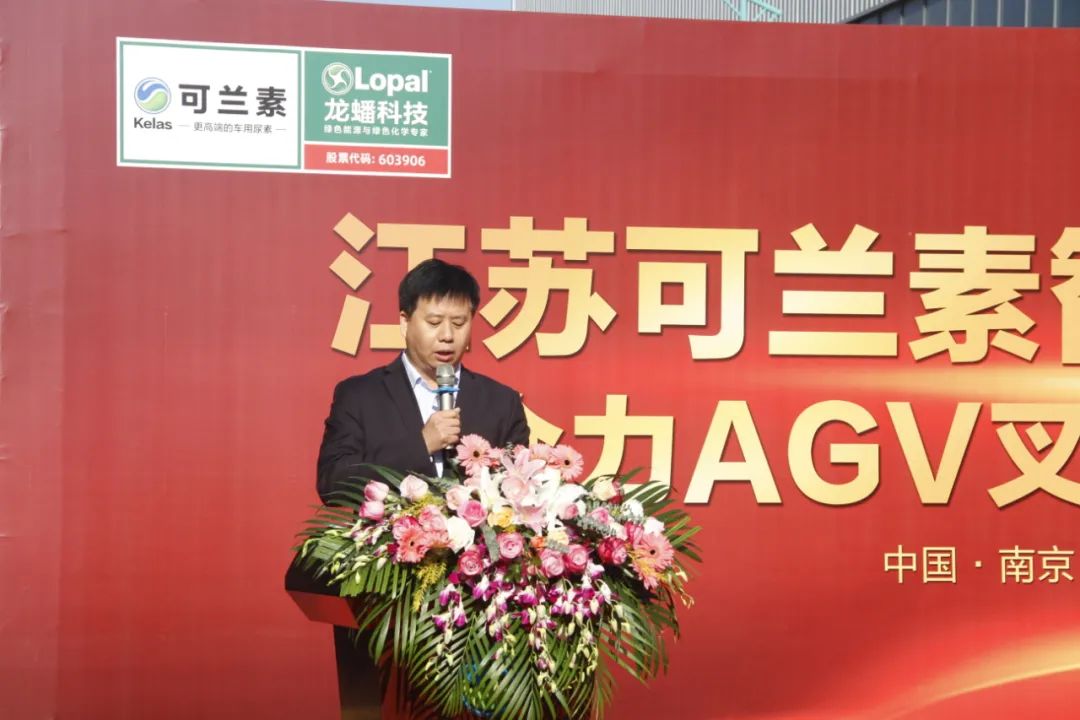 江苏龙蟠科技股份有限公司副总裁秦建对江苏可兰素智慧工厂暨合力AGV叉车投入运营项目的整体概况进行了介绍。