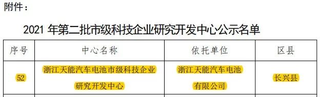湖州市科学技术局发布了关于2021年第二批市级科技企业研发中心的认定公示名单,浙江天能汽车电池有限公司申报的“浙江天能汽车电池市级科技企业研究开发中心”荣幸入列。经专家评审和市级评估等各个环节,浙江天能汽车电池市级科技企业研究开发中心正式认定成功。此次认定成功是对天能汽车电池技术研发实力的肯定,不仅促进了下一阶段科研工作的开展,同时为公司加快转型升级提供了动力。