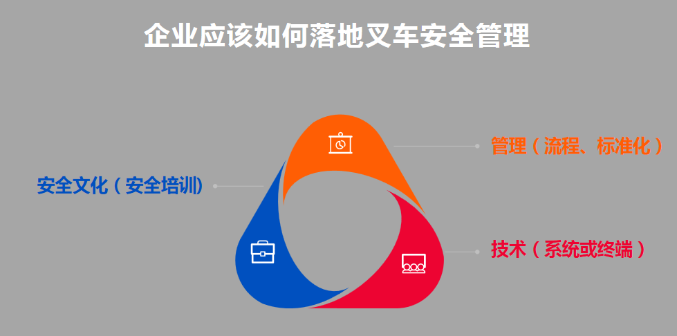 企业要真正落地叉车安全管理,还是得从管理流程与制度改善、安全培训提升安全意识、借力安全防护设备及技术,三管齐下,抓好安全生产工作。